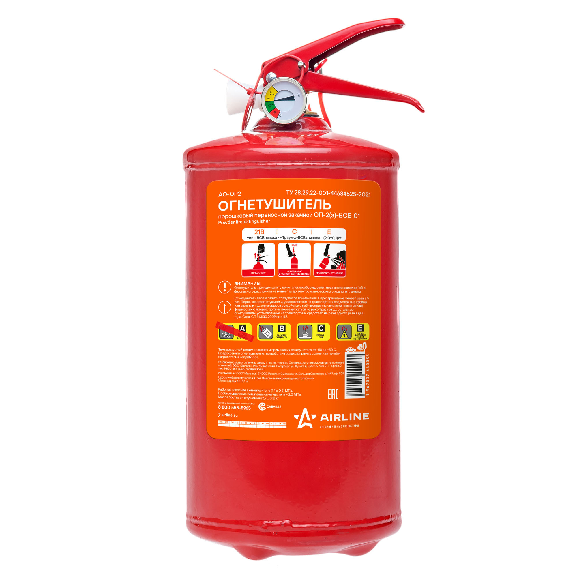 Огнетушитель порошковый ОП2 AIRLINE AO-OP2